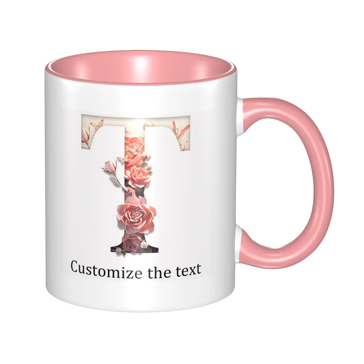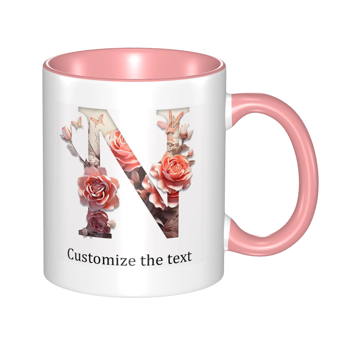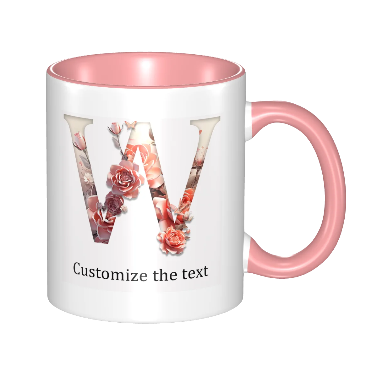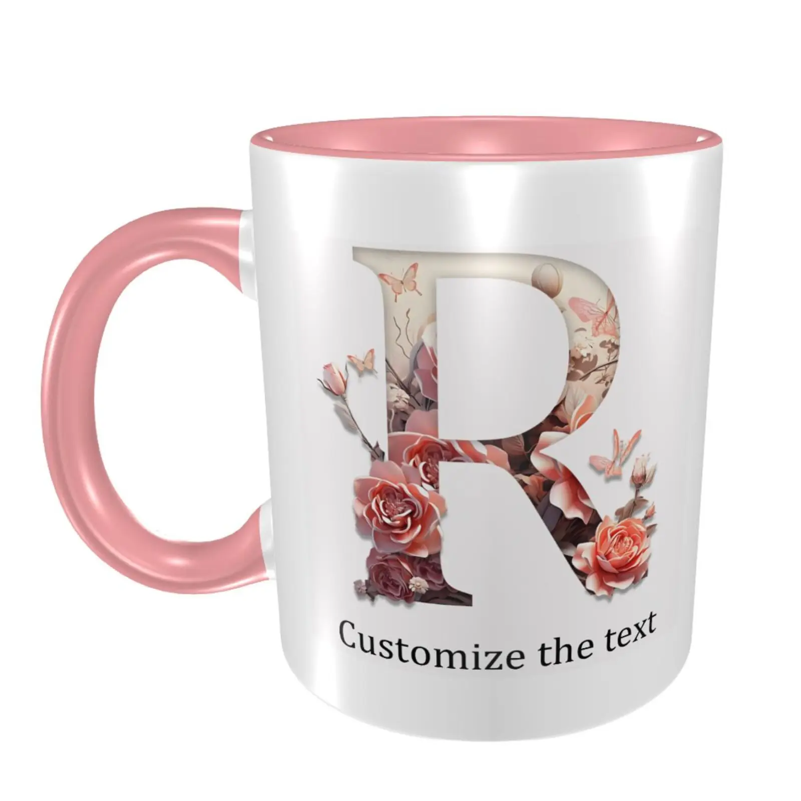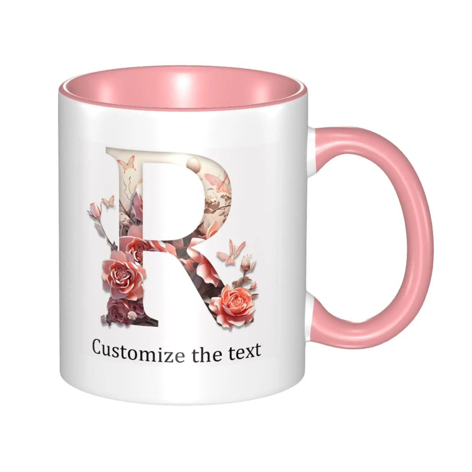 This ceramic coffee mug offers personalized floral design, allowing you to print names or text for a unique touch.