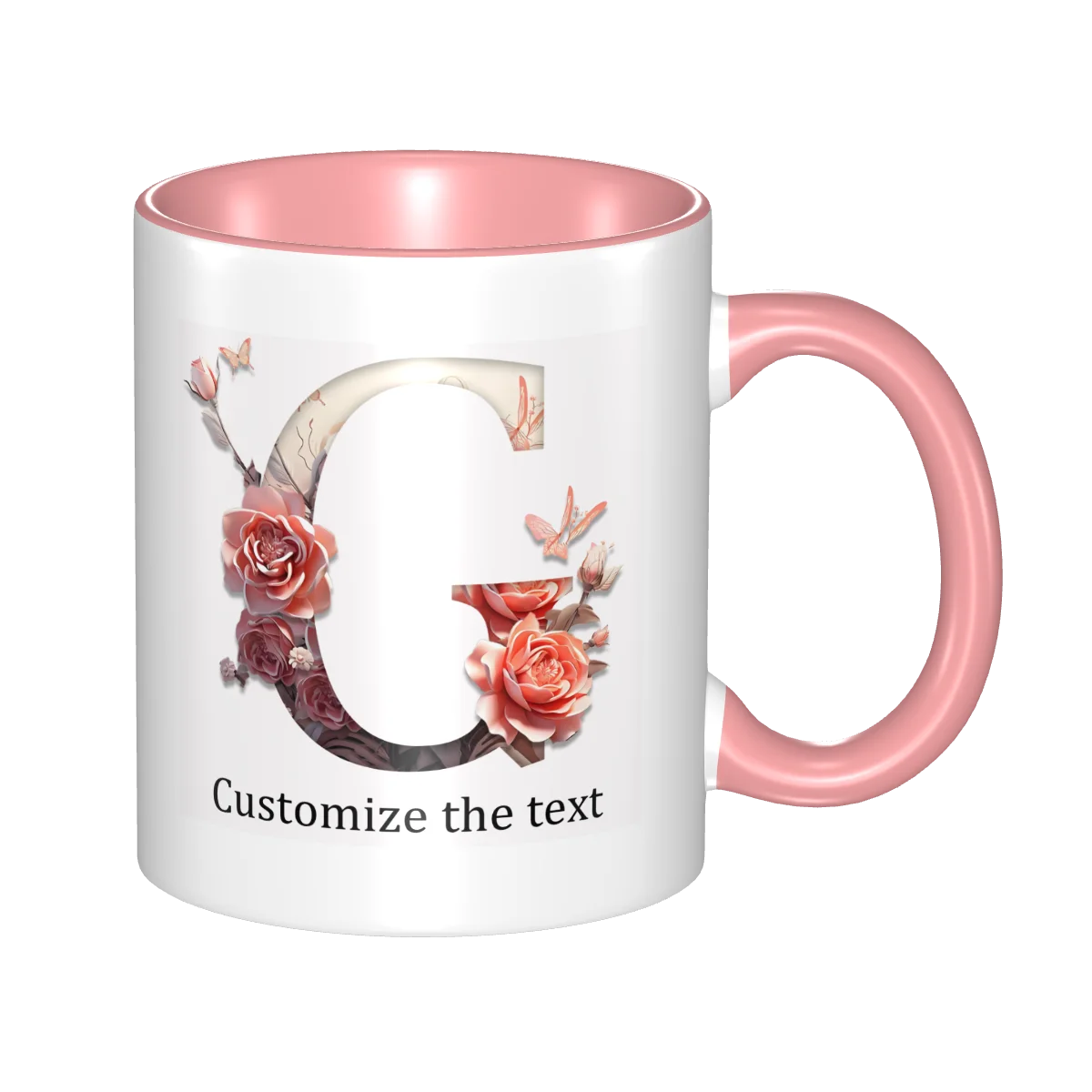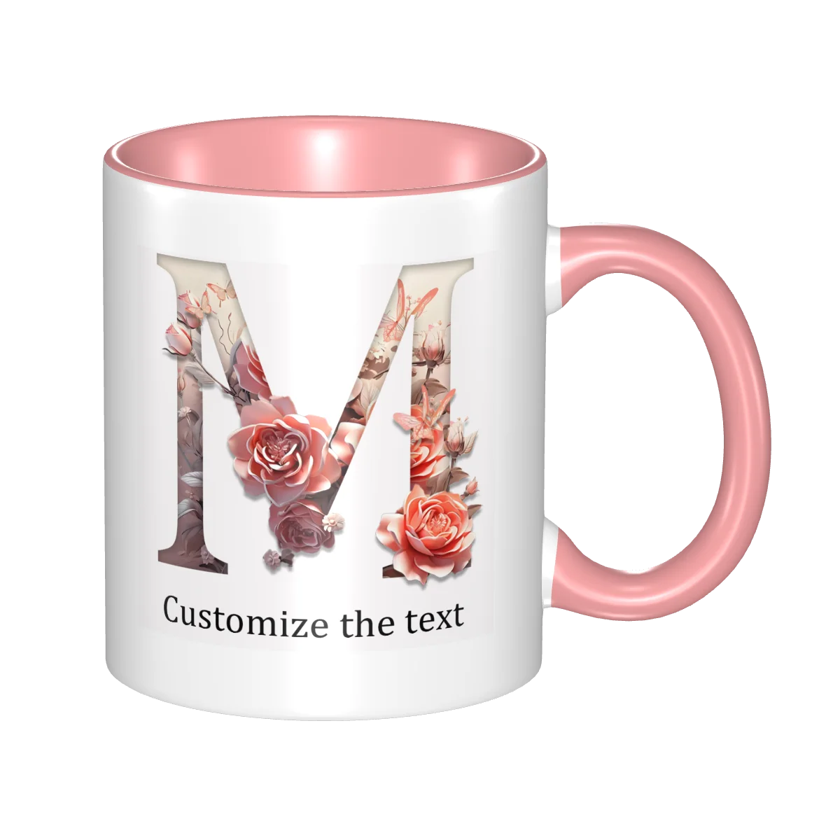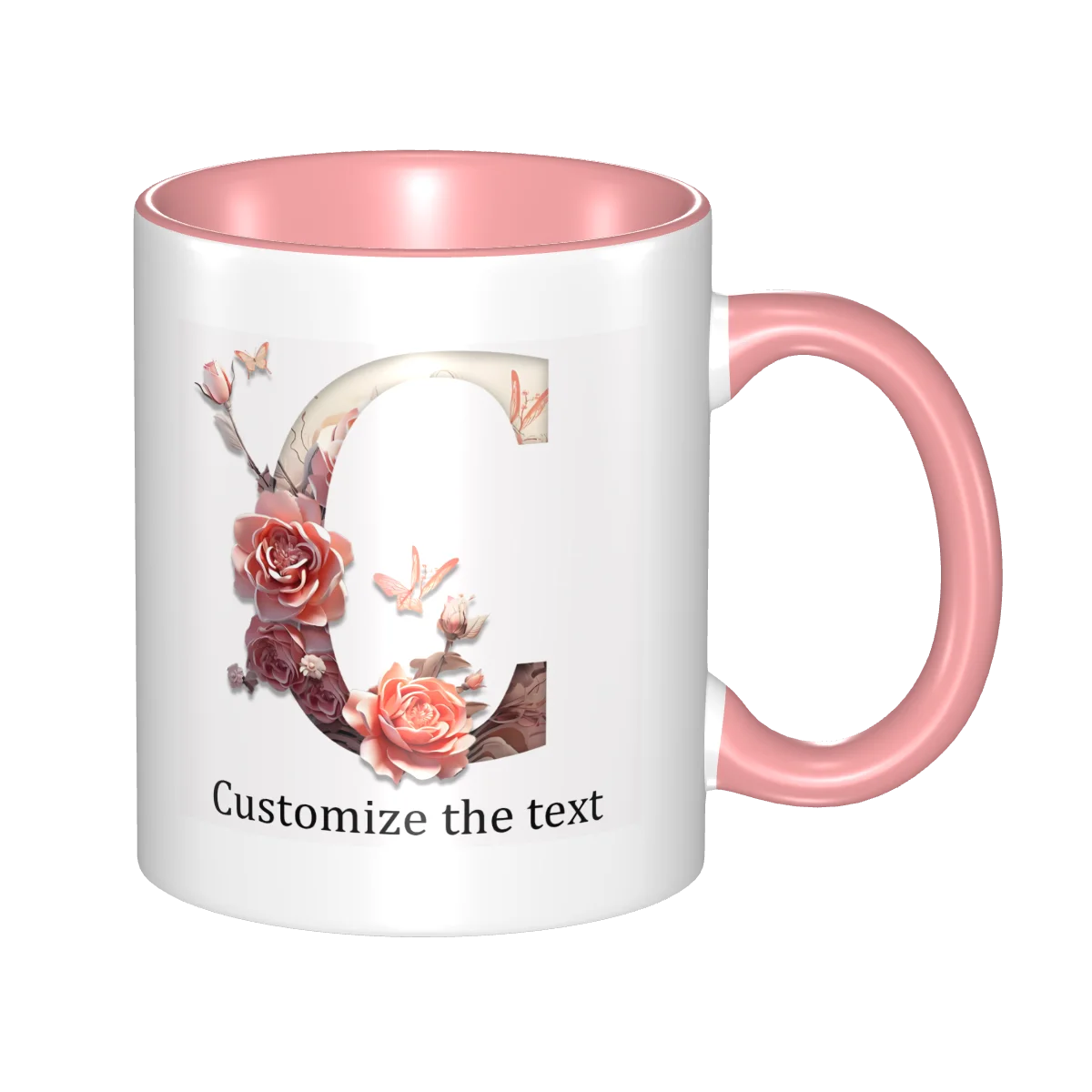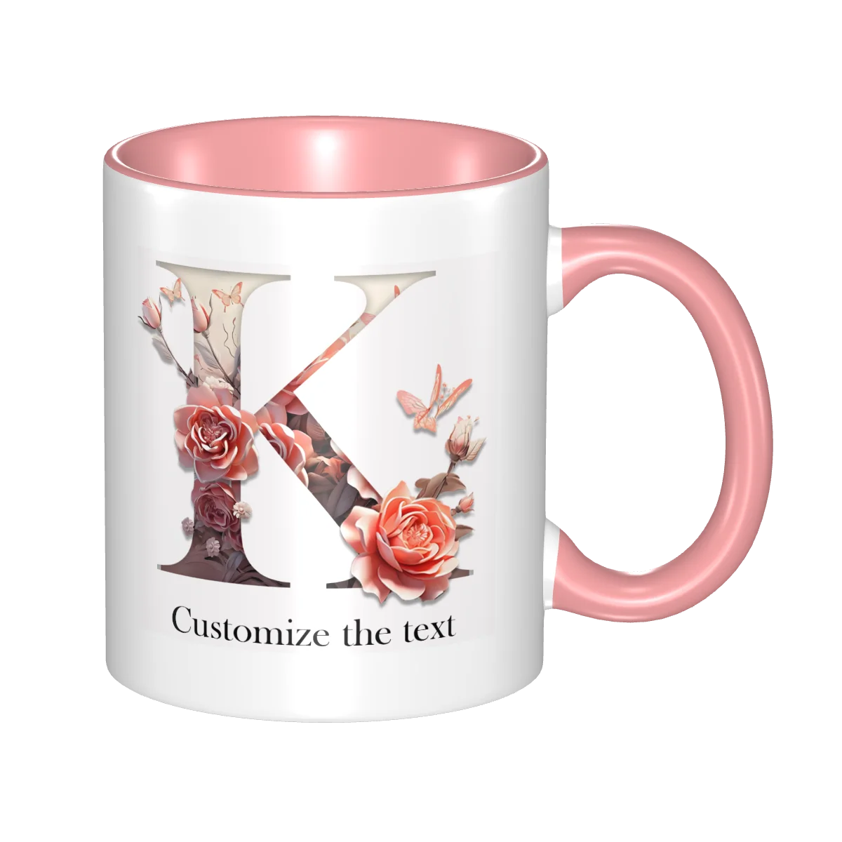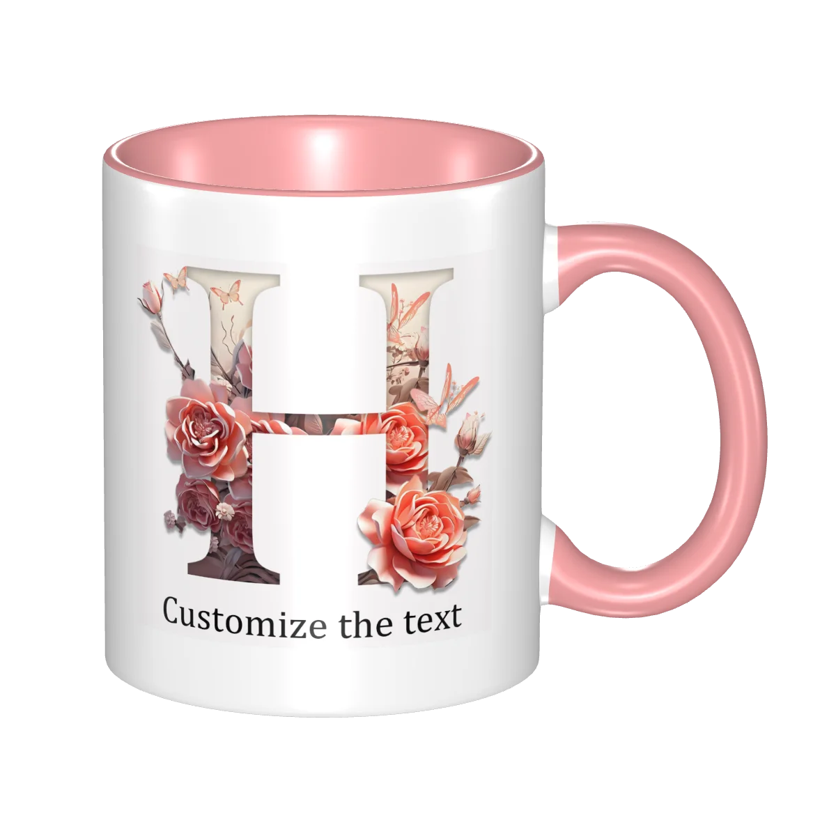 This ceramic coffee mug offers personalized floral design, allowing you to print names or text for a unique touch.