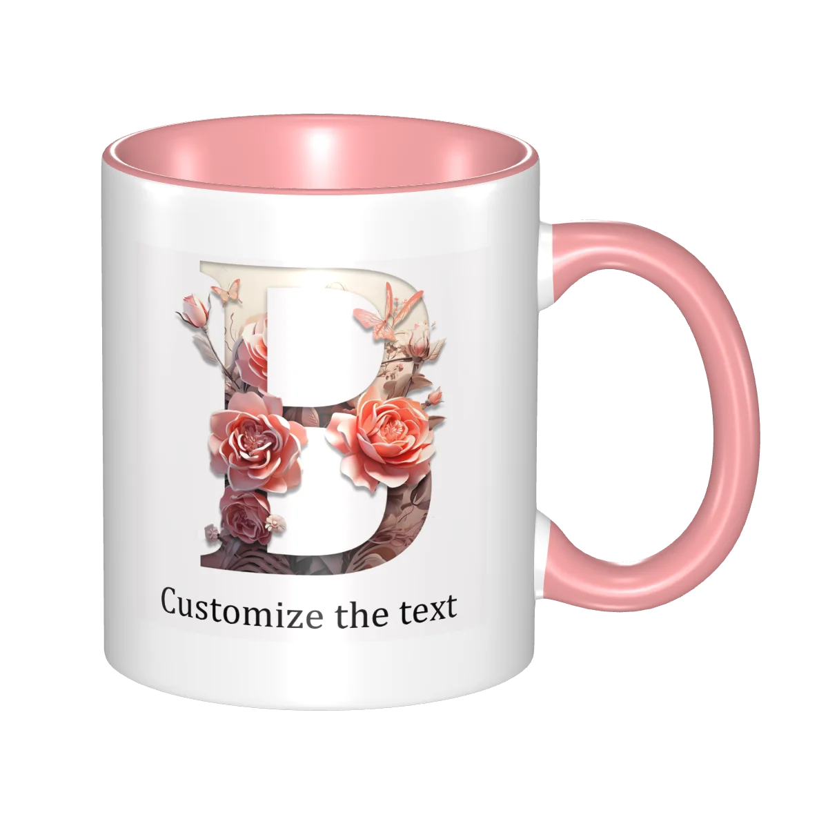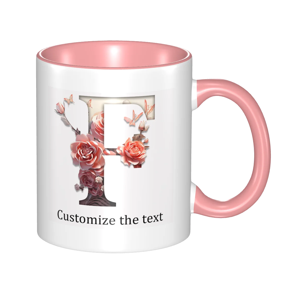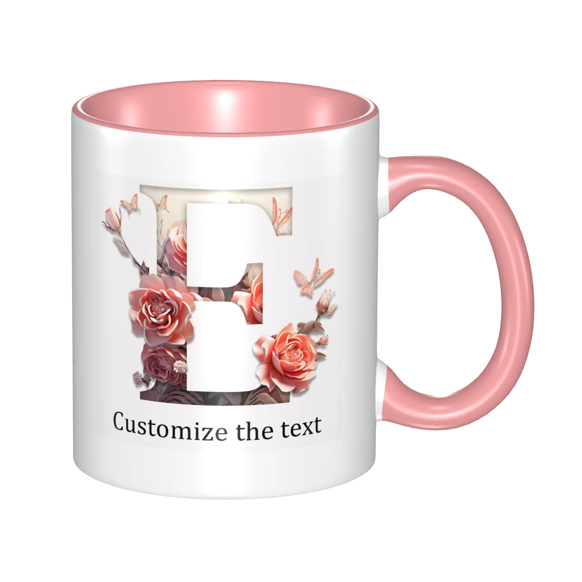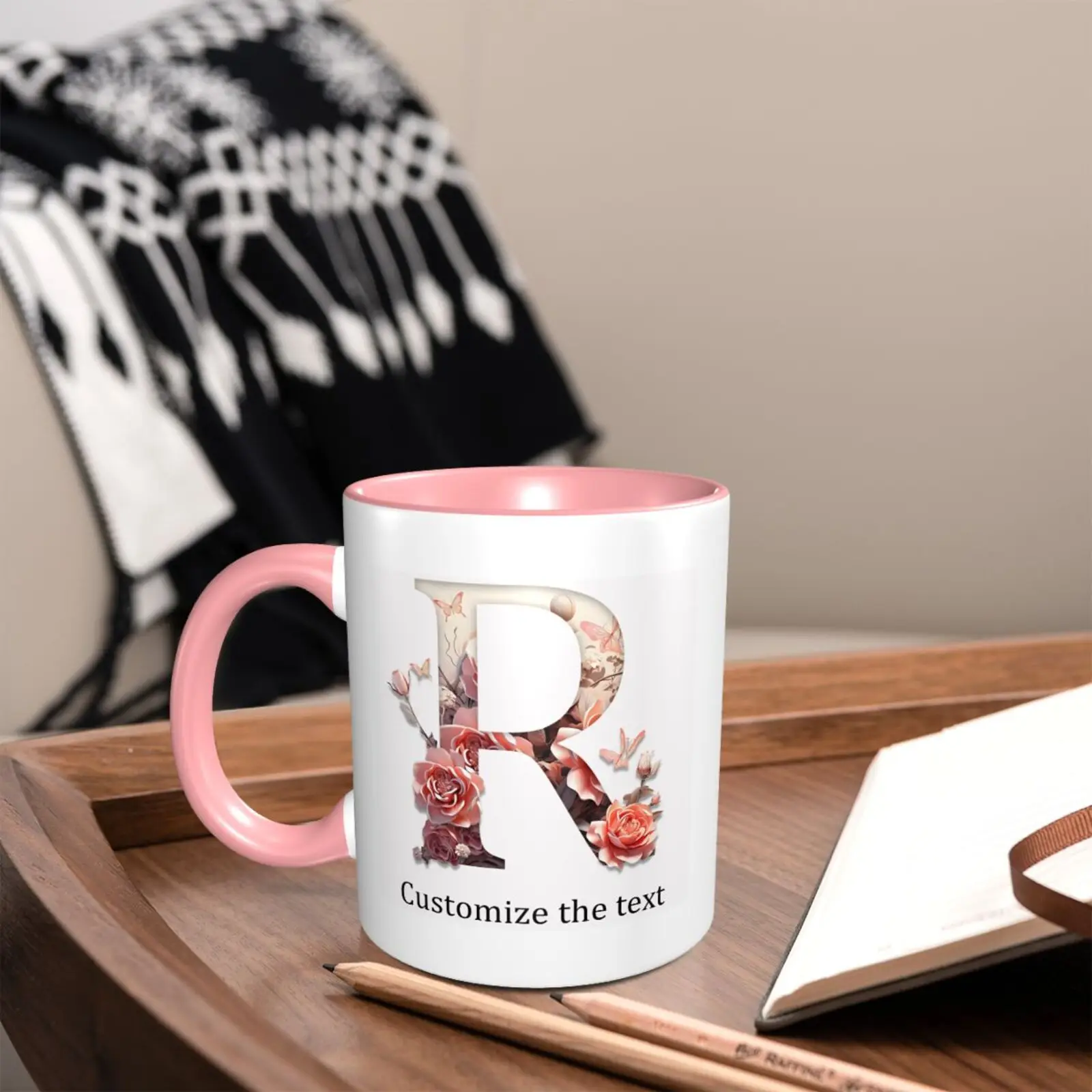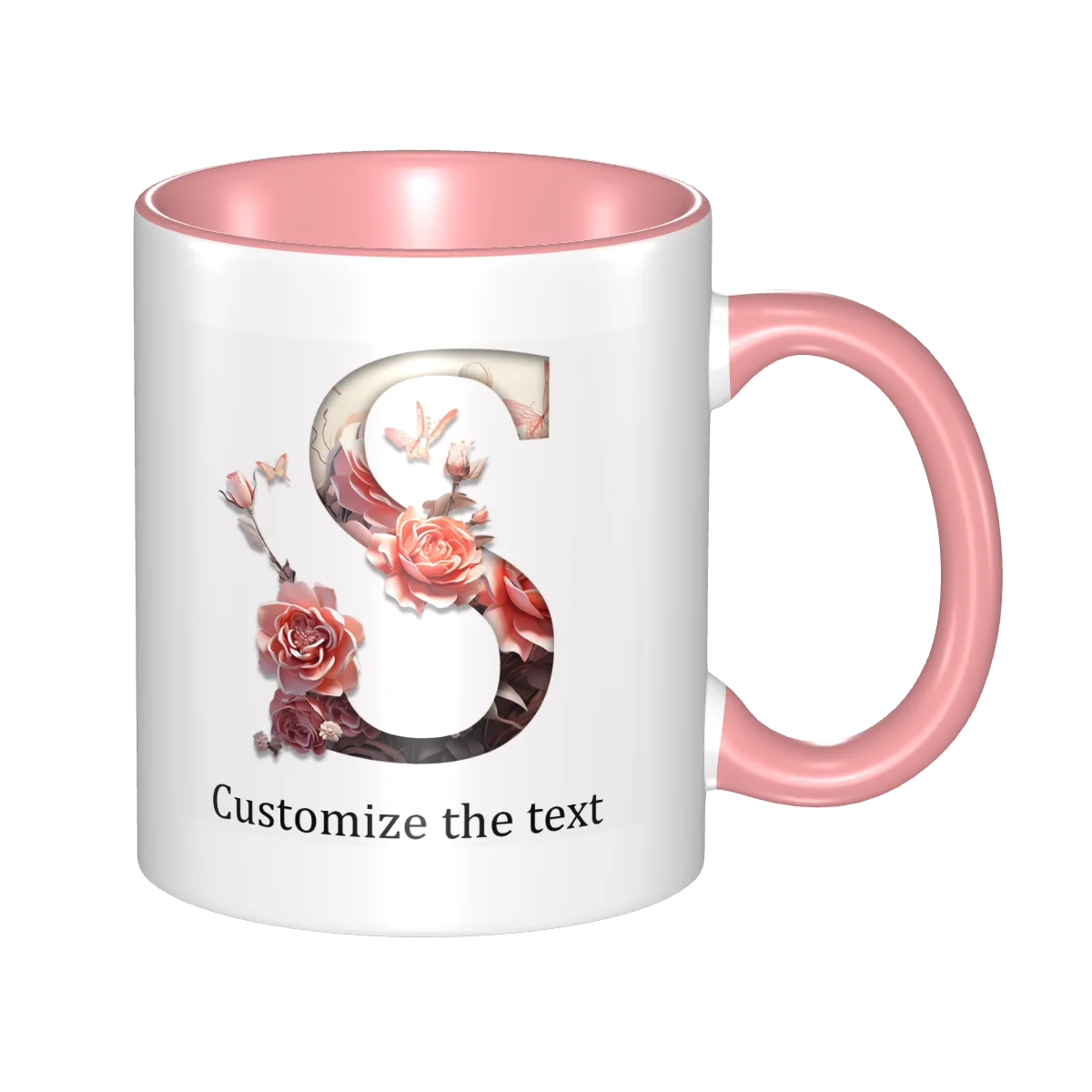This ceramic coffee mug offers personalized floral design, allowing you to print names or text for a unique touch.